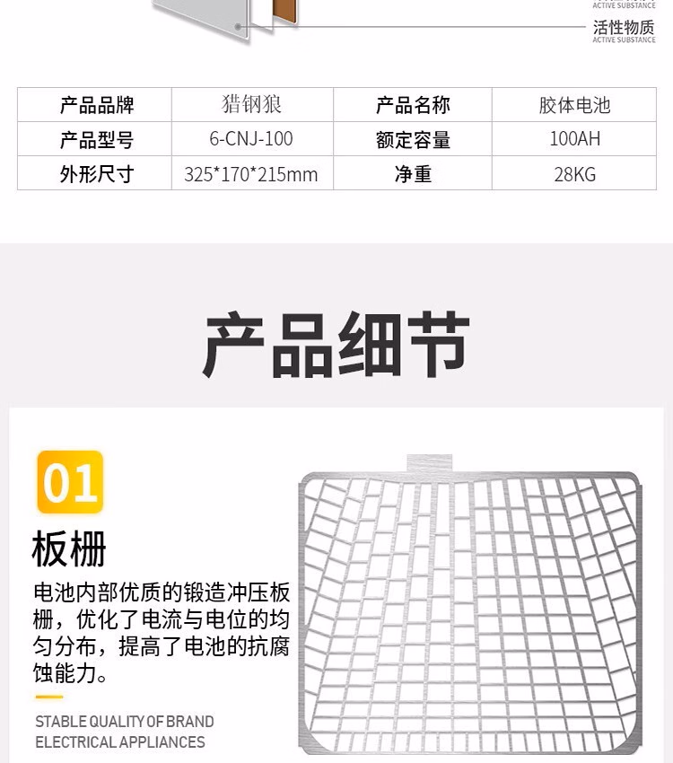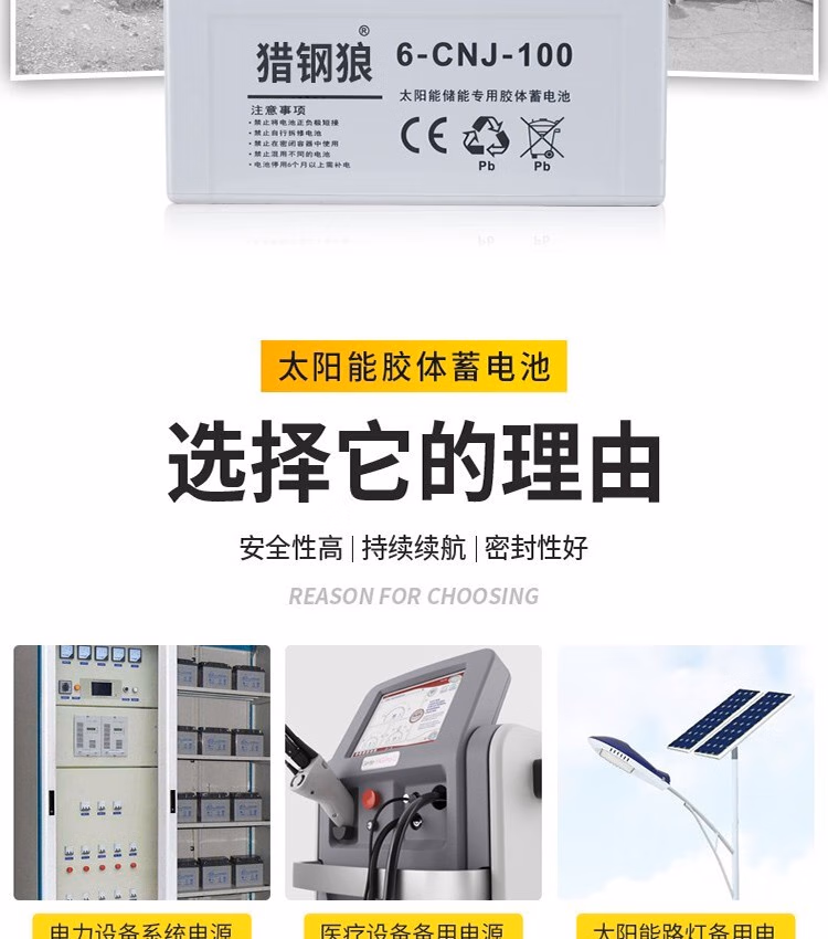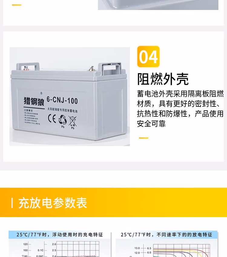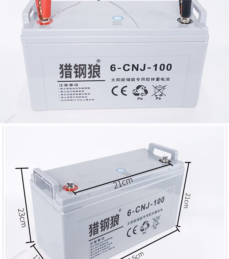 猎钢狼 户外太阳能胶体蓄电池12v家用大容量储电池电瓶路灯专用光伏电池 6-CNJ-100AH