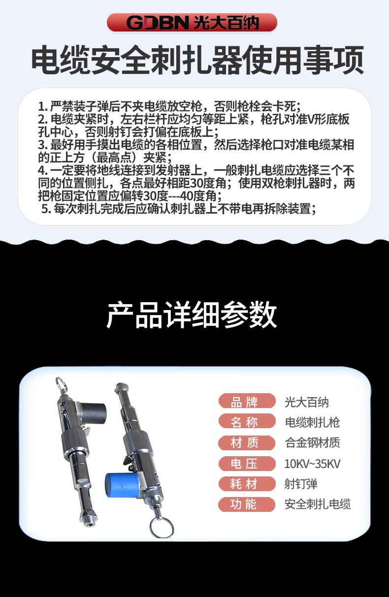 双枪电缆刺扎器 高压电缆施工安全刺穿装置钉枪 电力线缆故障检测